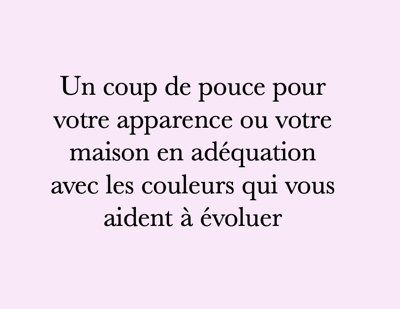 — J’équilibre ensuite la personne AVEC ses couleurs justes (à travers le relooking ou la psycho-décoration)