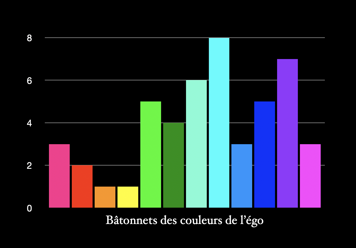 Ici, la personne aurait obtenu 8/8 au bleu ciel par exemple, 7/8 au violet, et 3/8 au rose.